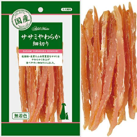 低脂肪・良質たん白質豊富なササミをやわらかく仕上げ、食べやすい細切りにしました。