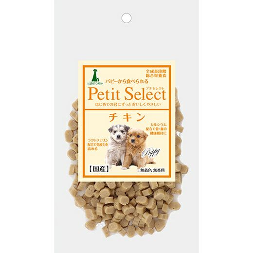 生後3ヶ月のパピーから食べられる、健康維持に配慮した総合栄養食。与えたカロリーだけいつものフードを減らしても栄養バランスをくずしません。パピーの小さなお口にもぴったりのプチサイズ。風味豊かな鶏肉が主原料で美味しく食べ続けられる。骨の健康を維持する牛乳由来のカルシウムを配合。カルシウムの吸収を助けるビタミンDをプラス。ラクトフェリン配合で健康を維持し免疫力を保つ
