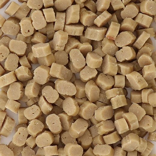 たん白質:14.0%以上、脂質:5.0%以上、粗繊維:1.0%以下、灰分:7.0%以下、水分:35.0%以下、ナトリウム:0.8g以下【含有微量成分(1kg当り)】カルシウム:0.65%以上、リン:0.52%以上、ビタミンA:3,250IU以上、ビタミンB1:0.65mg以上、ビタミンD:325IU以上、リノール酸:0.65%以上