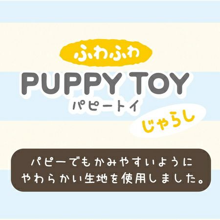 ●力を加えるとはずれる構造●シャカシャカフィルム入●パピーでもかみやすいようにやわらかい生地を使用しました。