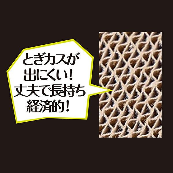 両面使えるダンボール製のつめみがき。ゆったり使え、多頭飼いにも最適なワイドサイズ。目が細かいからとぎカスが出にくい。またたび付。