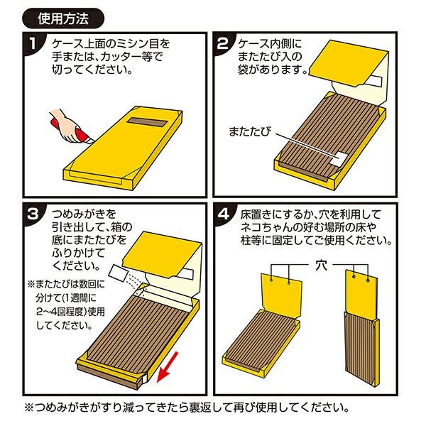 ●ワイドサイズでゆったり使え、多頭飼いにも最適。●両面使えて丈夫で長持ち経済的。●目が細かいからとぎカスが出にくい。●ネコちゃんの大好きなまたたび付。