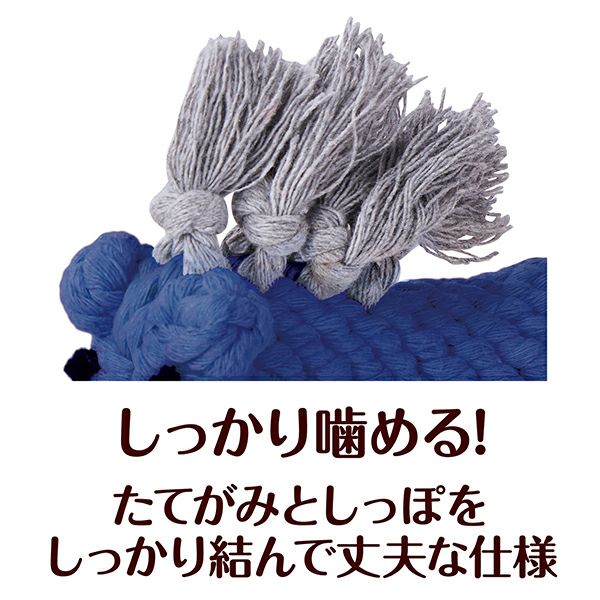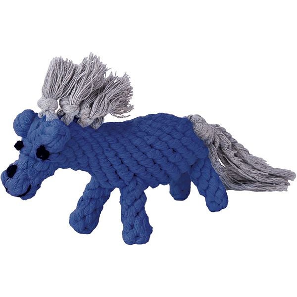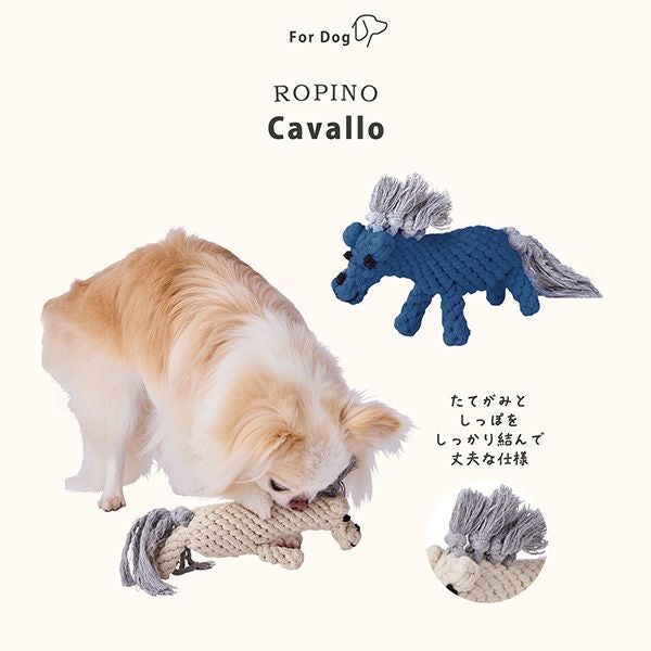イタリア語で青い馬という意味をもつブルカヴァロ。たて髪やしっぽは噛んで引っ張っても抜けにくい仕様。奥まで歯がしっかり入るので、デンタル効果も。編み目におやつを挟んでノーズワークおもちゃにも。ブラッシング効果も期待できます。