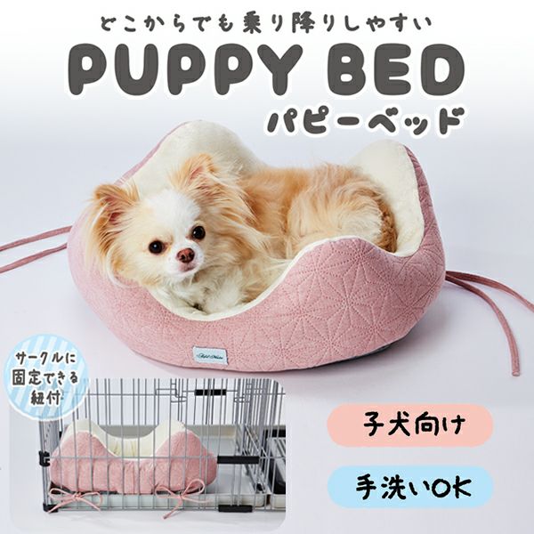 仔犬の可愛さを引き立てるキュートな色合いのふわふわベッド Add.Mate アドメイト どこからでも乗り降りしやすい パピーベッド ピンク