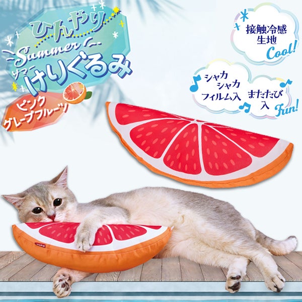 夏映えPhotoをSNSにシェアしよう! 猫用おもちゃ ひんやりサマーけりぐるみ ピンクグレープフルーツ