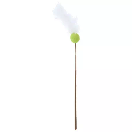 天然の鳥毛を使用したじゃらしに大興奮!持ち手の先端にウールボールがついたスティックタイプ。
