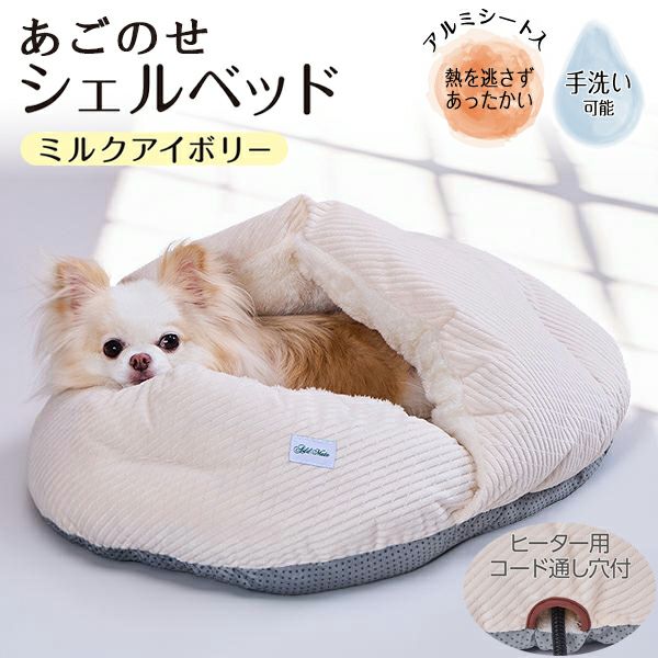 もぐりこんで包まれるベッド。あごのせしやすい張りのある形状。ヒーター用コード通し穴付。 Add.Mate アドメイト 犬猫用ベッド Cuna クーナ あごのせシェルベッド AWA ミルクアイボリー