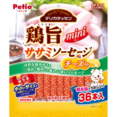 ペティオPetio犬用おやつデリカテッセン鶏旨ミニササミソーセージチキンチーズは低脂肪な鶏肉