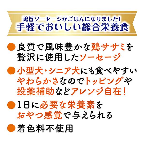 他の画像を見る 鶏旨ソーセージがごはんになりました!手軽でおいしい総合栄養食。風味豊かな鶏ササミを贅沢に使用した食べ切りサイズのミニソーセージ!栄養豊富なにんじん・かぼちゃ入り。 デリカテッセン 総合栄養食 鶏旨 ミニソーセージごはん ササミ野菜入り 8本入 通常価格 ¥ 272 販売価格 ¥ 272 税込 お気に入りに追加