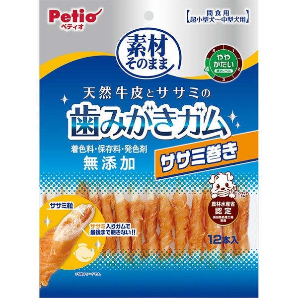 素材を活かした歯みがきガムにササミを巻いて毎日おいしく歯みがき! 素材そのまま 天然牛皮とササミの歯みがきガムササミ巻き 12本入