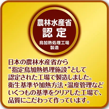 国から”指定鳥加熱処理施設”として認定された工場で製造しました。
