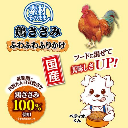 他の画像を見る 素材本来の味にこだわり、美味しく仕上げました!鶏ささみ100%使用(※使用肉原料として) 素材そのまま 鶏ささみ ふわふわふりかけ 20g 通常価格 ¥ 382 販売価格 ¥ 382 税込 お気に入りに追加