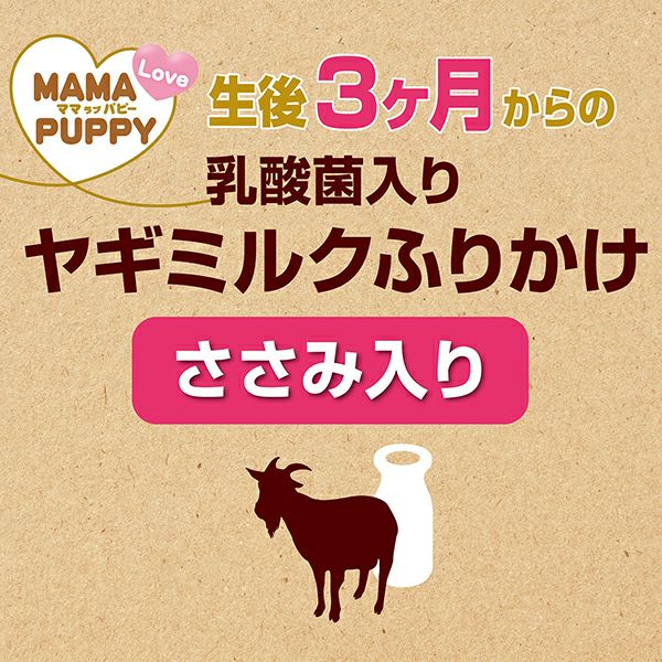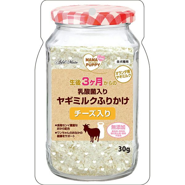 他の画像を見る 生後3ヶ月から、ワンちゃんのおなかの健康をサポートするヤギミルクのふりかけ。乳酸菌と食物センイ豊富なおから配合。ワンちゃんの大好きなささみ入り。 Add.Mate アドメイト ママラブパピー 乳酸菌入りヤギミルクふりかけ ささみ入り 30g 通常価格 ¥ 712 販売価格 ¥ 712 税込 お気に入りに追加