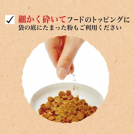 ●細かく砕いてフードのトッピングにも。袋の底にたまった粉もご利用ください。