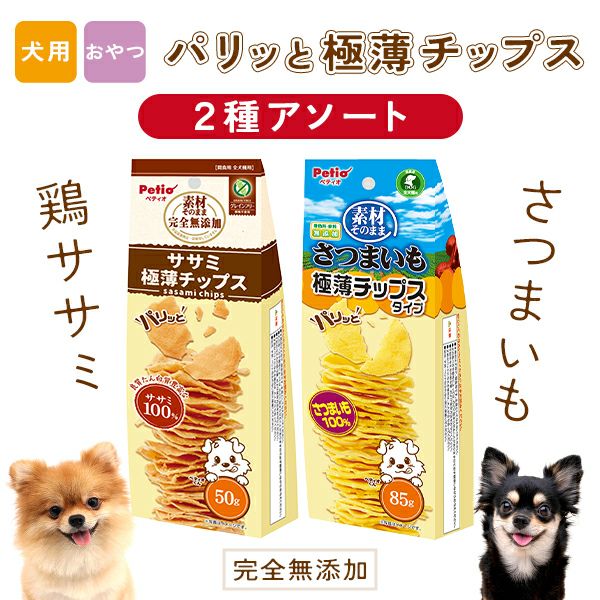 素材そのまま100%使用した食べやすい極薄チップス。さつまいもとささみチップスをセットで 素材そのままチップス 2種アソート パリッと極薄チップス さつまいも85g&ささみ50g