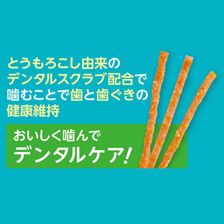とうもろこし由来のデンタルスクラブを配合で、噛むことで歯と歯ぐきを健やかに保つ