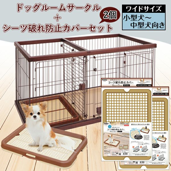 スペースを区切れるからトイレの場所を覚えやすい!シーツ破れ防止カバー付きのお得なセット。 【シーツ破れ防止カバー2枚付き】トイレのしつけが出来る ドッグルームサークル ブラウン ワイド