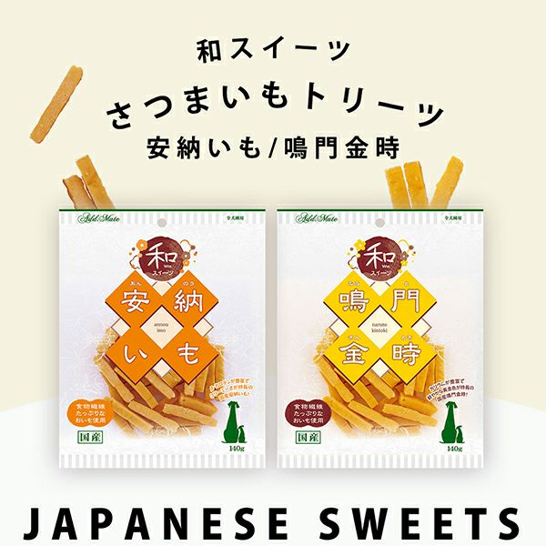 他の画像を見る 食物繊維豊富なさつまいもを使用したしっとりやわらかなトリーツ。 Add.Mate アドメイト 和スイーツ さつまいもトリーツ 鳴門金時 140g 通常価格 ¥ 1,078 販売価格 ¥ 1,078 税込 お気に入りに追加