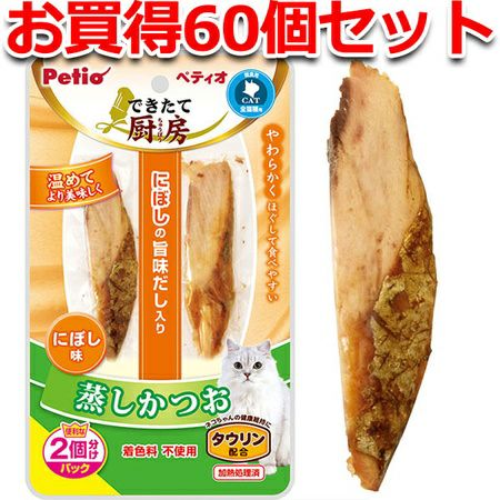 6. 60個セット1個分無料|送料無料|できたて厨房 キャット 蒸しかつお にぼし味 2本入
