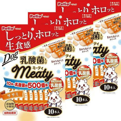 しっとり、ホロッと生食感。一度食べたらやめられない!!素材を活かしたスナック 10本に乳酸菌BFI株を約500億個配合。きみにちからを!乳酸菌POWER! Meaty ミーティ ササミ 乳酸菌入り 10本入×3個パック