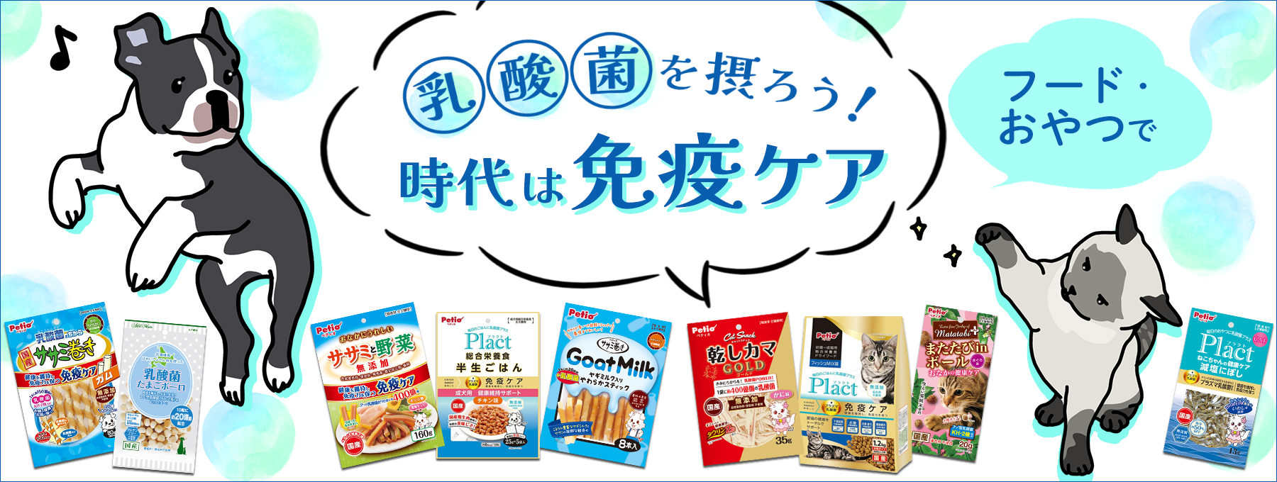 KIRINの免疫研究が発見したプラズマ乳酸菌配合のPlact(プラクト)シリーズなど、乳酸菌配合のフード・おやつなら、毎日気軽に与えることができるのでおすすめです。