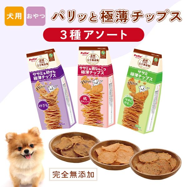 他の画像を見る 食品添加物完全無添加、素材のみ100%使用しました。パリッと食感でそのままでも、好みのサイズに割っても食べやすい極薄チップス。3種類のアソートセット。 素材そのまま 完全無添加 3種アソート パリッと 極薄チップス ササミ&砂ぎも/ササミ&野菜/ササミ&なんこつ 45g 限定セット品 通常価格 ¥ 1,313 販売価格 ¥ 1,287 税込 お気に入りに追加
