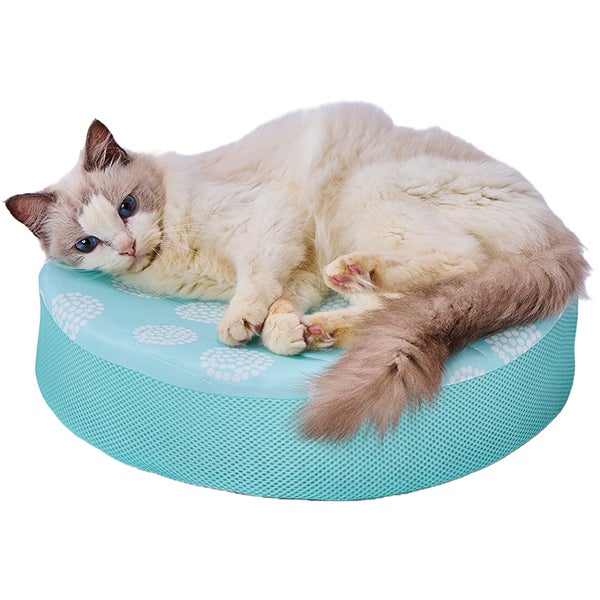 洗いやすくて、くぼみが体にフィット、3つの素材で夏が快適に。 猫用マット まるごと洗えるひんやりエアーマット ドットグリーン
