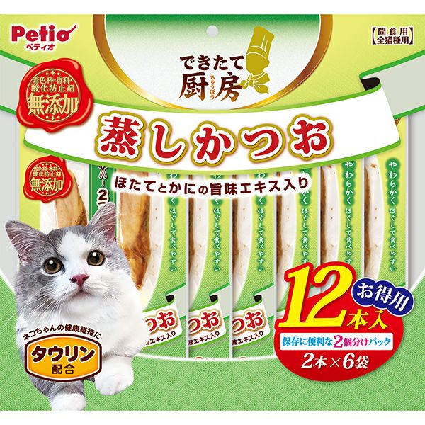 他の画像を見る かつお節の旨味だし入り。やわらかくほぐして食べやすい。 60個セット1個分無料|送料無料|できたて厨房 キャット 蒸しかつお かつお節味 2本入 限定セット品 通常価格 ¥ 13,068 販売価格 ¥ 12,870 税込 お気に入りに追加