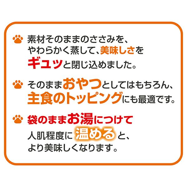 他の画像を見る ほたてとかにの旨味エキス入り蒸しささみ。温めると一層美味しく。やわらかくほぐして食べやすい。じっくり蒸して風味を閉じ込めました。ボリュームたっぷりお買い得パック! できたて厨房 キャット 蒸しささみ プチ 1切れ×10パック 通常価格 ¥ 877 販売価格 ¥ 877 税込 お気に入りに追加