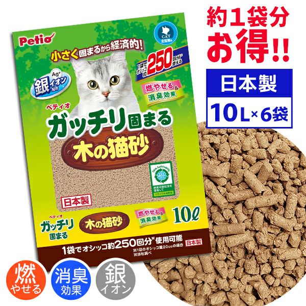 他の画像を見る 小さく固まるので経済的! 【ケース販売1袋分無料/定期購入5%OFF】ペティオ ガッチリ固まる木の猫砂 10L×6袋 60L 限定セット品 定期購入あり 通常価格 ¥ 7,128 販売価格 ¥ 5,940 税込 お気に入りに追加