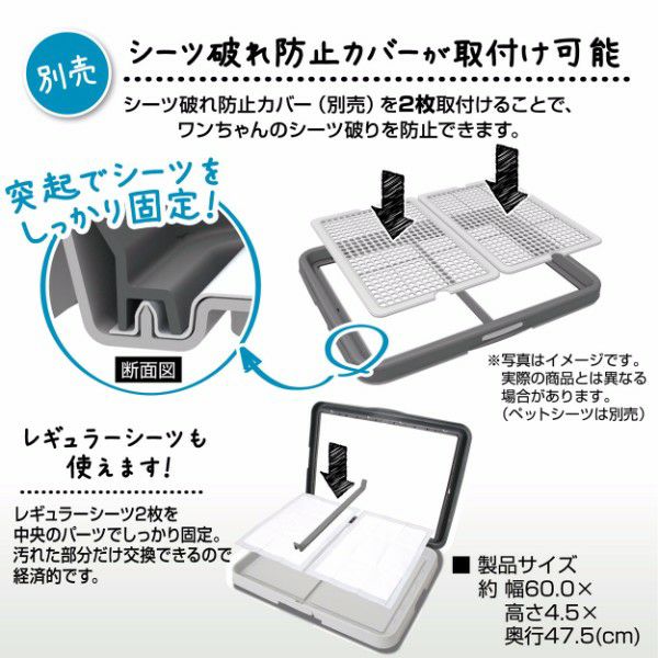 他の画像を見る トイレとカバーのセット!中央のパーツでレギュラーシーツを2枚固定できるので汚れた部分だけ交換可能! ワイドサイズに合わせられるトイレトレーカバーを2枚セットで。 【10%OFF】片手で楽々ドッグトレー グレー ワイド+シーツ破れ防止カバーグレー×2個セット【3点セット】 限定セット品 通常価格 ¥ 5,984 販売価格 ¥ 5,368 税込 お気に入りに追加