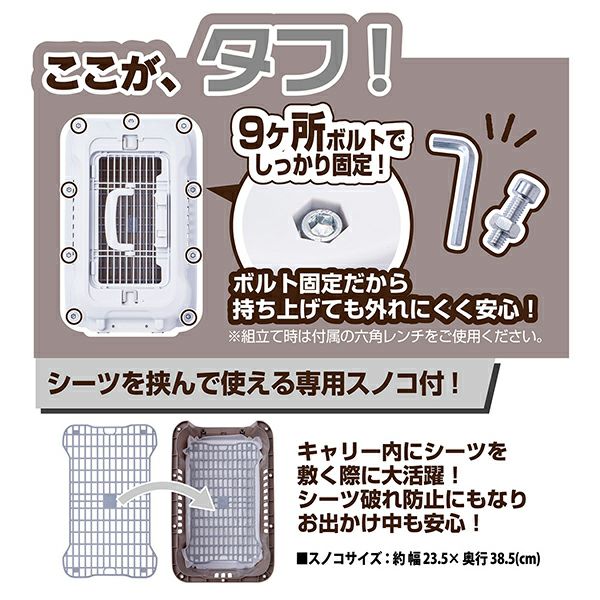 他の画像を見る 正面ドアは左右どちらからも開け、9カ所ボルトでしっかり固定できる、タフハウスキャリー! 犬猫用キャリー 2ドア タフハウスキャリー アイボリー M 通常価格 ¥ 7,678 販売価格 ¥ 7,678 税込 お気に入りに追加