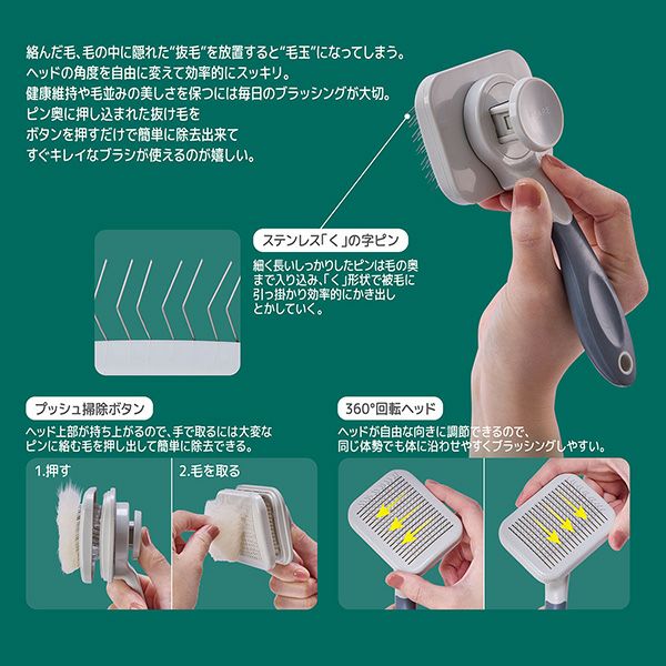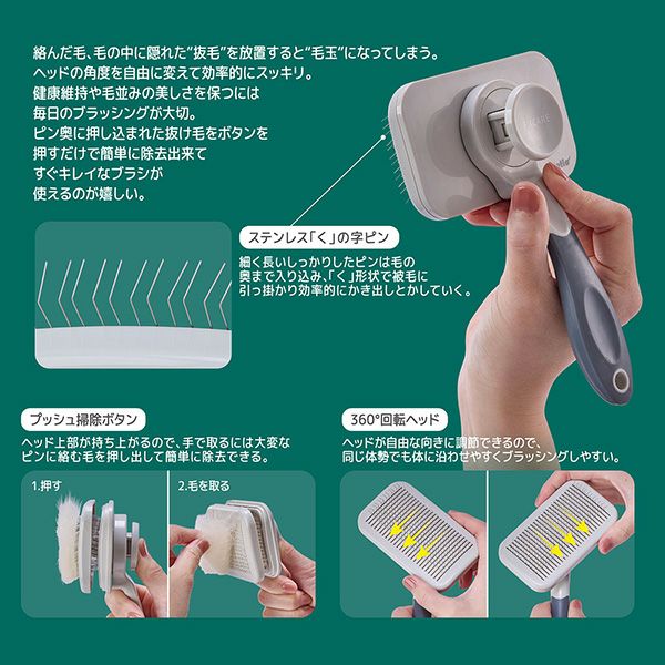 他の画像を見る あの子の表情は、あなたがつくりだす。回転ヘッドで抜け毛・もつれをスムーズに取り除き、掃除ボタンでピンに絡んだ毛を除去できるスリッカーブラシ。 【20%OFF!スーパーSALE】犬猫用 FIXCARE 掃除がしやすいボタン式 回転スリッカーブラシ S【会員様限定】 通常価格 ¥ 2,068 販売価格 ¥ 2,068 税込 会員価格 ¥ 1,654 税込 お気に入りに追加