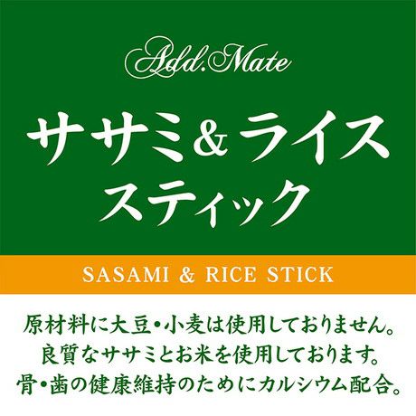 他の画像を見る 原材料に大豆・小麦は使用せず、良質なササミと国産のお米を使用しております。 Add.Mate アドメイト ササミ&ライススティック 80g 通常価格 ¥ 635 販売価格 ¥ 635 税込 お気に入りに追加