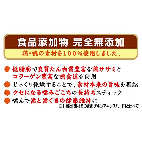 他の画像を見る 食品添加物完全無添加の鶏すじ100%使用!素材本来の旨味凝縮! 素材そのまま 完全無添加 チキンアキレス ハード 50g 通常価格 ¥ 657 販売価格 ¥ 657 税込 お気に入りに追加