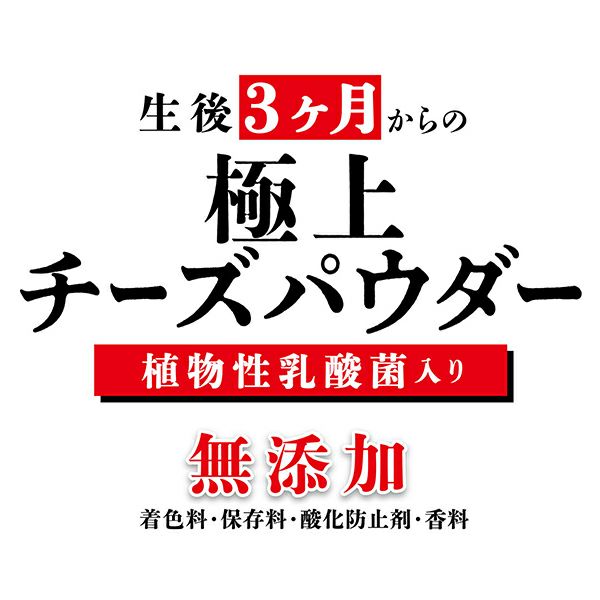 他の画像を見る 風味豊かなナチュラルチーズを100%(使用チーズ原料として)使用し、いつものごはんに絡みやすいパウダー状に仕上げました。 極上 生後3ヶ月からの チーズパウダー 乳酸菌入り 50g 通常価格 ¥ 492 販売価格 ¥ 492 税込 お気に入りに追加