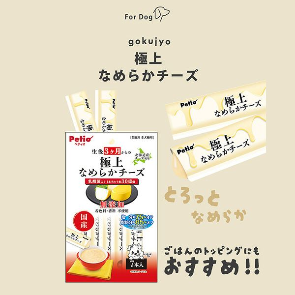 他の画像を見る 生後3ヶ月のパピーから成犬まで安心、北海道産チーズを使用した極上なめらかチーズ。お腹の健康を元気に保つ乳酸菌KH-2株入り。 極上 生後3ヶ月からの なめらかチーズ 乳酸菌入り 7本入 通常価格 ¥ 437 販売価格 ¥ 437 税込 お気に入りに追加