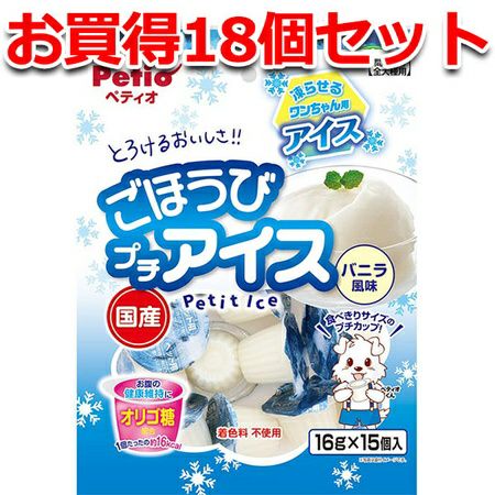 他の画像を見る とろけるおいしさ!凍らせるワンちゃん用アイス!! 18個セット1個分無料|送料無料|ごほうびプチアイス バニラ風味 16g×15個入 限定セット品 通常価格 ¥ 9,860 販売価格 ¥ 9,325 税込 お気に入りに追加