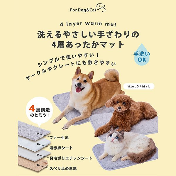 他の画像を見る 暖房いらず、あたたか快適、やさしくぬくぬくリラックス。 犬猫用マット 洗える やさしい手ざわりの4層あったかマットAWA M 通常価格 ¥ 1,738 販売価格 ¥ 1,738 税込 お気に入りに追加