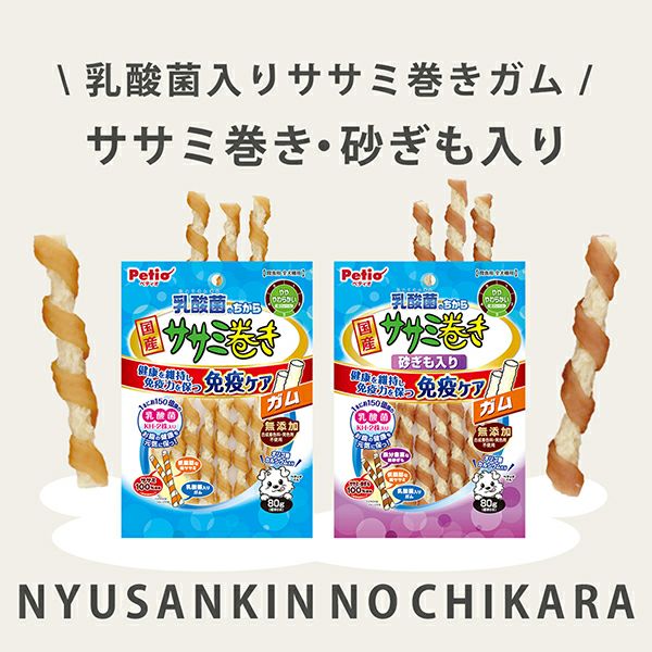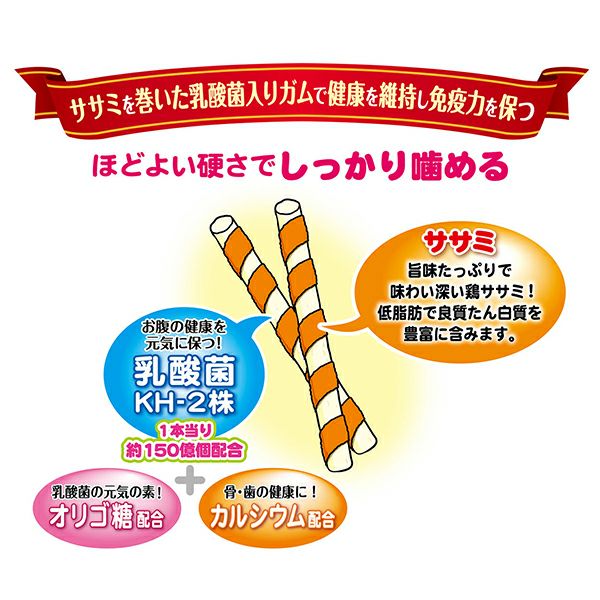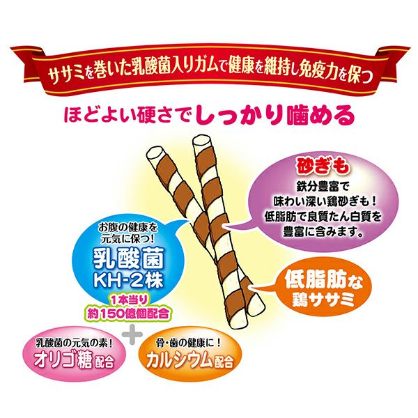 他の画像を見る 1本に約150億個の乳酸菌配合でお腹の健康を元気に保つ!健康を維持し、免疫力を保つ”免疫ケア”。ほどよい噛みごたえの乳酸菌入りガムに鶏ササミを巻きました。 乳酸菌のちから ササミ巻き 80g 通常価格 ¥ 437 販売価格 ¥ 437 税込 お気に入りに追加