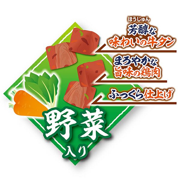 他の画像を見る 芳醇な味わいの牛タンとまろやかな旨味の鶏肉をふっくら蒸して美味しさを閉じ込めました。しつけのご褒美にピッタリな角切りタイプ!栄養豊富な野菜入り 牛タンまろ 無添加 角切り 野菜入り 180g 通常価格 ¥ 418 販売価格 ¥ 418 税込 お気に入りに追加