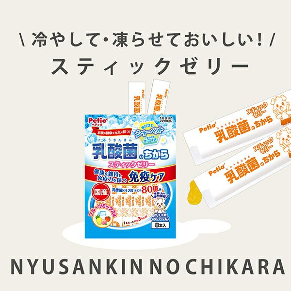 他の画像を見る 1本に約80億個の乳酸菌配合でお腹の健康を元気に保つ!健康を維持し、免疫力を保つ”免疫ケア”。毎日こまめに水分補給。便利なスティックタイプでお散歩にもピッタリ。凍らせてシャーベットにするのもオススメ 乳酸菌のちから スティックゼリー フルーツミックス味 8本入 通常価格 ¥ 437 販売価格 ¥ 437 税込 お気に入りに追加
