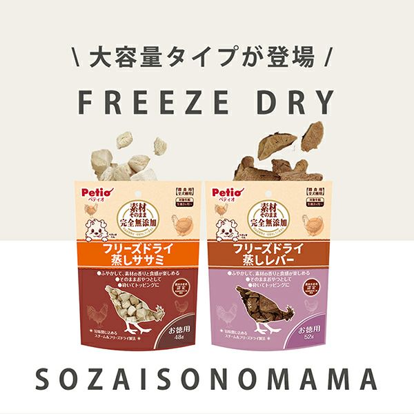 他の画像を見る 素材そのままの美味しさが味わえ、目的に合わせてアレンジ自在なフリーズドライ!低脂肪な蒸しササミ!お徳用パック。 素材そのまま 完全無添加 フリーズドライ 蒸しササミ 48g 通常価格 ¥ 767 販売価格 ¥ 767 税込 お気に入りに追加