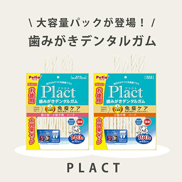 他の画像を見る 毎日のおやつに乳酸菌プラス。KIRINの免疫研究が発見した「プラズマ乳酸菌」を配合。健康を維持し、免疫力を保つ”免疫ケア”。噛むことで牛皮のコラーゲン繊維が汚れをからめて落とす。 Plact プラクト 歯みがきデンタルガム 超小型~小型犬 ハード 140g 通常価格 ¥ 1,298 販売価格 ¥ 1,298 税込 お気に入りに追加