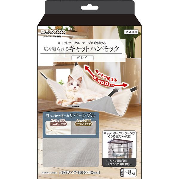 他の画像を見る キャットサークル・ケージに取付けて広々使えるキャットハンモック 猫用ハンモック necoco 広々寝られる キャットハンモック グレイ 通常価格 ¥ 2,178 販売価格 ¥ 2,178 税込 お気に入りに追加