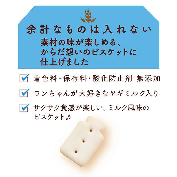 他の画像を見る サクッと美味しいミルク風味のビスケット。ワンちゃんが大好きなヤギミルク入り。お得な大容量。 余計なものは入れない ヤギミルク入り ビスケット サクサクタイプ 270g 通常価格 ¥ 437 販売価格 ¥ 437 税込 お気に入りに追加