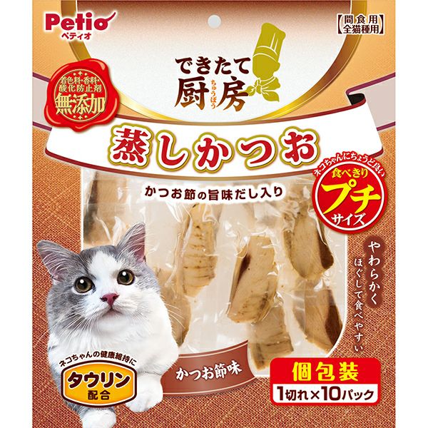 他の画像を見る ほたてとかにの旨味エキス入り蒸しかつお。温めると一層美味しく。やわらかくほぐして食べやすい。じっくり蒸して風味を閉じ込めました。 できたて厨房 キャット 蒸しかつお 2本入 通常価格 ¥ 217 販売価格 ¥ 217 税込 お気に入りに追加