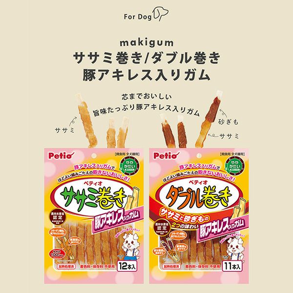 他の画像を見る 程よい噛みごたえでコラーゲン豊富な豚アキレス入りの牛皮ガムにササミを巻きました! ササミ巻き 豚アキレス入りガム 12本入 通常価格 ¥ 437 販売価格 ¥ 437 税込 お気に入りに追加