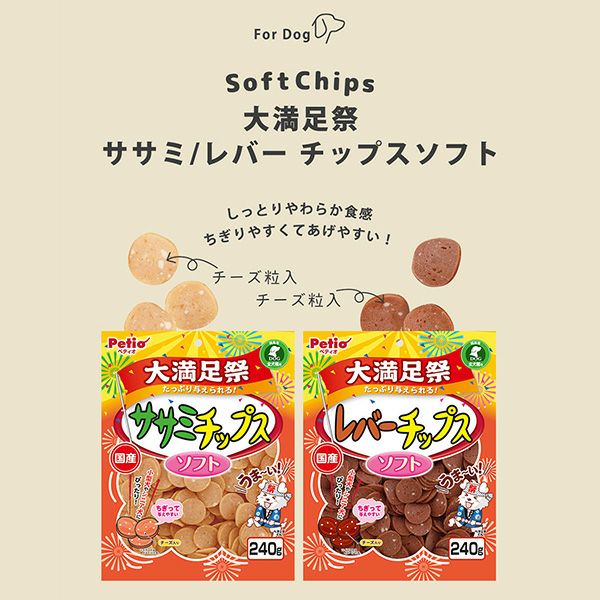 他の画像を見る 大満足祭!たっぷり与えられるレバーチップス。ちぎって与えやすいソフトタイプなので小型犬やシニア犬にぴったり!大容量タイプ。 レバーチップス ソフト 大満足祭 240g 通常価格 ¥ 877 販売価格 ¥ 877 税込 お気に入りに追加