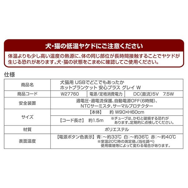 他の画像を見る 2つの安心機能をプラスした電気ですぐに温まって気持ちいい、なめらかな肌ざわりでやわらかいホットブランケット。広々、多頭飼いにも使いやすいワイドサイズ。 犬猫用 USBでどこでもあったか ホットブランケット 安心プラス グレイ W 通常価格 ¥ 6,578 販売価格 ¥ 6,578 税込 お気に入りに追加